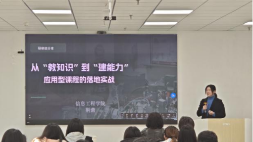 随后,教师教学发展中心邀请了在本学期磨课工作中参与校观摩示范课展示的优秀教师代表,聚焦“如何提升课堂教学质量”展开了深度分享。信息工程学院的荆蕾老师针对应用型课程的教学痛点,提出从“理论优先”到“项目驱动”、从“封闭课堂”到“数智并举”的教学转型路径,荆老师通过在课堂上引入真实工程项目案例与创新课堂考核方式,展示了如何让学生在“做中学”中提升解决实际问题的能力,培养“眼里有活”的工程人才。经济管理学院的李雯静老师结合BOPPPS教学模型,从课堂导入、教姿教态、教学设计三个方面分享了“活过程+优方法+显评价”的教学心得,李老师提出的趣味互动设计、故事化教学理念以及“兴于诗、立于礼、成于乐”的课堂导入方法,为提升课堂吸引力提供了实用借鉴。
