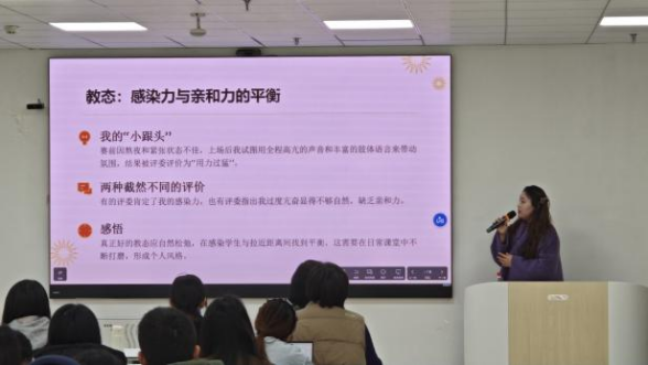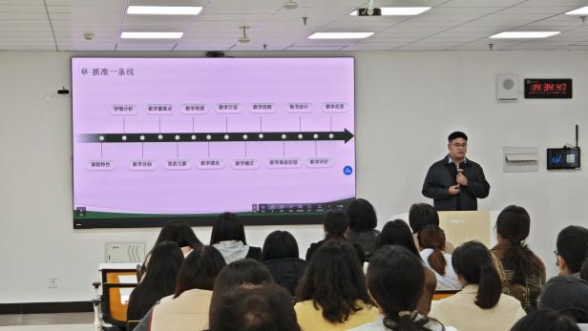 山东省民办高校第九届青年教师教学大赛中表现优异的刘同老师和傅安妮老师进行备赛经验分享。外国语学院的刘同老师凭借多次参加教学竞赛的丰富经验,以“内容为王、设计为魂”为核心,系统拆解了教学竞赛的备赛逻辑,并围绕课程特色、学情分析、教学目标、思政元素融入等关键环节,详细阐述了“三环六步”教学模式与数智赋能的教学实践,强调教学设计要紧扣办学定位与人才培养方案,实现“形神兼备、人课合一”。食品与生物工程学院的傅安妮老师则以自身参赛经历为切入点,坦诚分享了备赛与参赛过程中的反思与感悟,从充分准备、教态平衡、着装礼仪三个维度,结合省级比赛的严苛标准,为青年教师提供了详尽的参赛指引,传递了“以赛促教、以赛促长”的成长理念。
