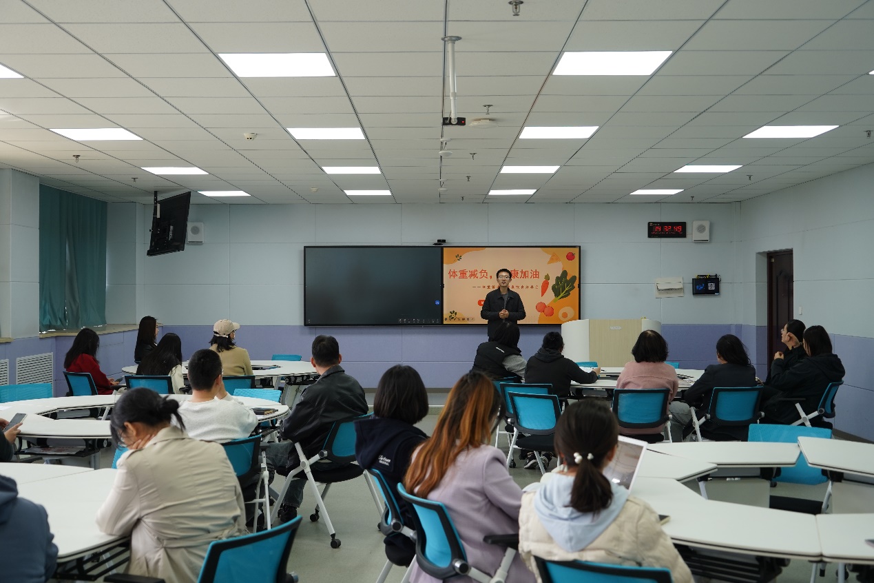 讲座中,潘冠辰老师结合春季养生特点,通过大量生活化的案例和互动问答,帮助教职工厘清了在体重管理、食物摄入、日常运动等常见的误区,并从行为改变的角度,给出了可操作、可持续的健康管理方案。潘老师强调,一场讲座并不会使身体健康,真正有效的是生活习惯的长期优化。